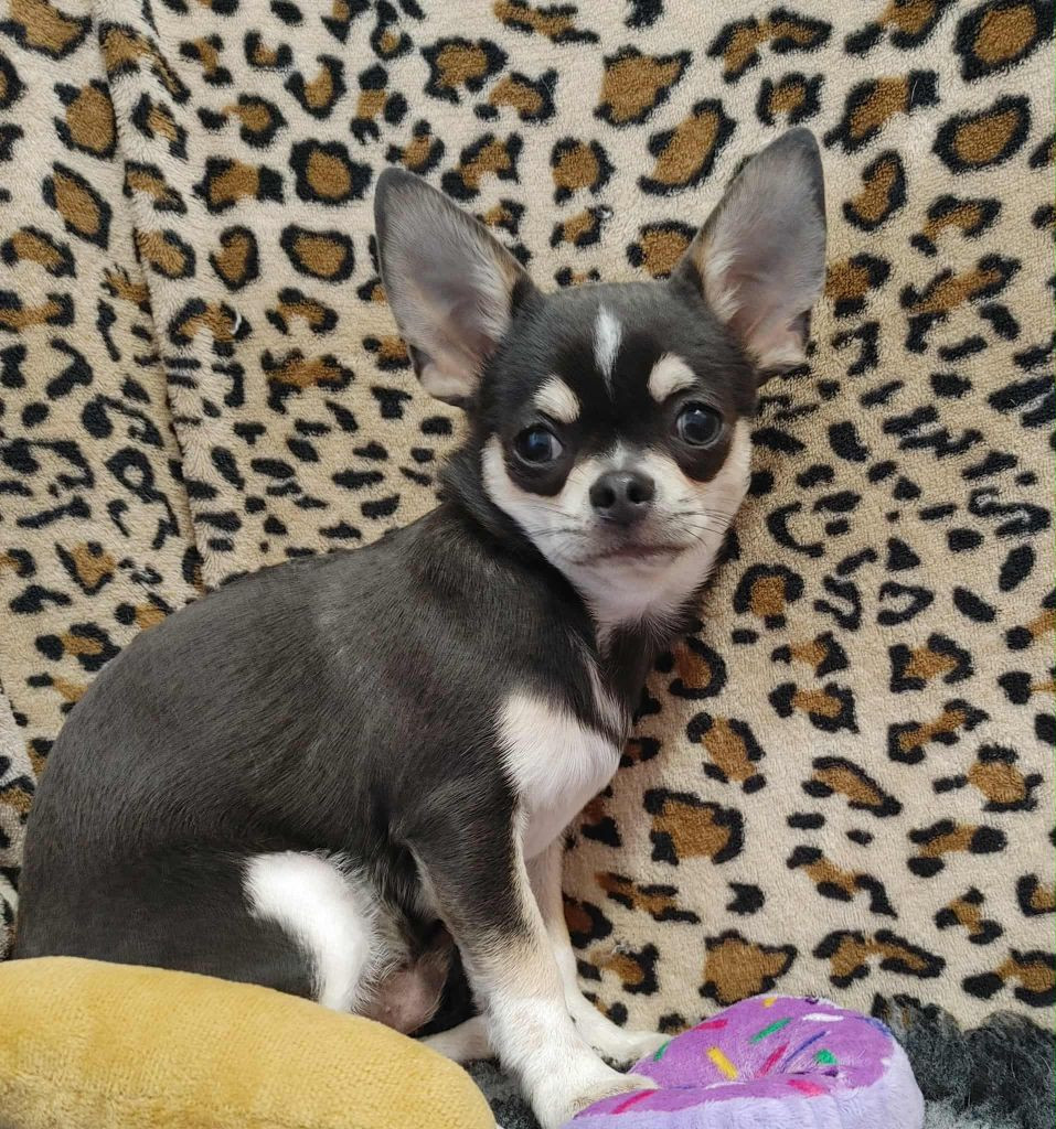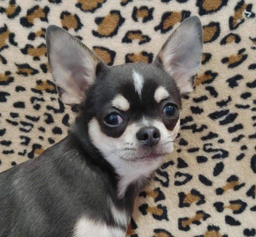 Tres gentil jeune chihuahua typique de la race avec pour robe un joli bleu bien réparti. Pour compagnie. Disponible de suite. Testicules en place, fontanelle fermée, dentition complète en ciseau. Vacciné pour un an avec rage et passeport. Identification ADN et filiation effectuée s. Parents côtés 4 (recommandés) et identifiés ADN, indemnes de la luxation de la rotule, indemnes de tares oculaires et des maladies génétiques de la race. Contact au 0673384054